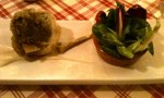 La strada tortuosa, la visibilità limitatissima da nuvola bassa, la neve cedente copiosa like x-mas, ce lo hanno fatto decisamente sudare ma, alla fine, dietro ad un tornante retto da un muro pietra-a-vista tanto spesso da parere un bastione di contenimento del fosso di Helm, come è uso in Vallée, l’abbiamo visto affiorare, tra le spesse nebbie… il ristorante. Vi eravamo già stati, appena su piazza, quattro anni fa circa e la sorpresa era stata ottima. L’atmosfera ti avvolge subito, tra il vezzoso montano e la trattoria di provincia, boiserie antica fino a metà pareti, tinte giallo pastello sui muri, alle finestre tendone spesse e rosse con renne ( animale qui sconosciuto, chissà perché vada tanto ), doubleface. Ci accomodiamo, la signora che ci accoglie, molto gentile, indossa una camicetta di volant a mezza manica, il cui motivo colorato ricorda il Sam Francis ultima maniera, che lascia semi-scoperto un tatuaggio sull’avambraccio sinistro, memore di chissà quali avventure giovanili. La carta dei vini è giustamente voluminosa, con una buona selezione di etichette, il menù è esile e facilmente leggibile: selezione di tre antipasti, serviti con una coppa di prosecco a perfetta temperatura, con un perlage pimpante e pure buono; un tris di primi e di secondi, il tagliere di formaggi serviti con le loro composte e una scelta di tre dolci che sembrano uno più invitante dell’altro.