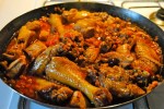 Sveglia puntata alla 8:30. Domenica. Fuori della finestra zero anime. La pentola in ferro attende tranquilla. L’olio extravergine d’oliva si spande sulla superficie nera lucidandola poco a poco. Con un colpo sordo s’accende il gas, qualche minuto e i primi pezzi di pollastro si ritrovano a sfrigolare. Uno dopo l’altro. Prima dalla parte della spessa pelle poi direttamente sulla carne, 10/15 minuti ciascuno. Terminata l’operazione rosolatura, il grasso e l’olio residui sul fondo della pentola, abbandonano i fornelli per lo scarico. Senza condimento una parte di grasso della bestia fonde nel tegame, poco dopo sedano carota e cipolla iniziano a soffriggere. Dentro la carne, poi un bicchier di vino novello, una volta sfumato, dentro una scatola di pelati, rosmarino, prezzemolo, salvia e due cucchiai di olive taggiasche. Due ore e trenta ed il piatto è pronto.