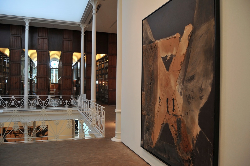 A Barcellona in Aragò 255, a due passi da Passeig de Gràcia, da circa vent’anni sta ad accogliervi ( e vi consiglio caldamente di farle una visita ) la Fondazione Antoni Tàpies che, per chi già non lo conoscesse è, insieme al nostro amatissimo Burri, il grande guru dell’arte fatta con la materia, quell’arte che da sempre mi affascina per via della sua durezza e povertà, spesso più povera dell’arte Povera stessa. La Fondazione è padrona di una considerevole collezione di capolavori che spaziano dai primi anni ancora figurativi per giungere ad opere recentissime. La cosa bella è che l’esposizione è in continuo mutamento, una rivoluzione meravigliosa che consente allo spettatore di godere d’uno spettacolo sempre nuovo, ad ogni nuova visita. Intorno all’esposizione, quasi fosse cornice secentesca di maestri bergamaschi ad abbracciare un taglio rosso di Fontana, è il palazzo costruito tra il 1881 e l’85 da Lluis Domènech i Montaner, per la casa editrice Montaner, chiarissimo esempio del primo modernismo articolato e rigoroso in ogni sua linea. All’interno è anche visitabile, ma solo su appuntamento, l’immensa biblioteca che era della casa editrice e che raccoglie anche la biblioteca personale dell’artista catalano. Un’ultima nota riguarda il pavimento della fondazione, si tratta di un parquet industriale tanto affascinante quanto ipnotizzante, della serie: guardate bene dove mettete i piedi.