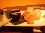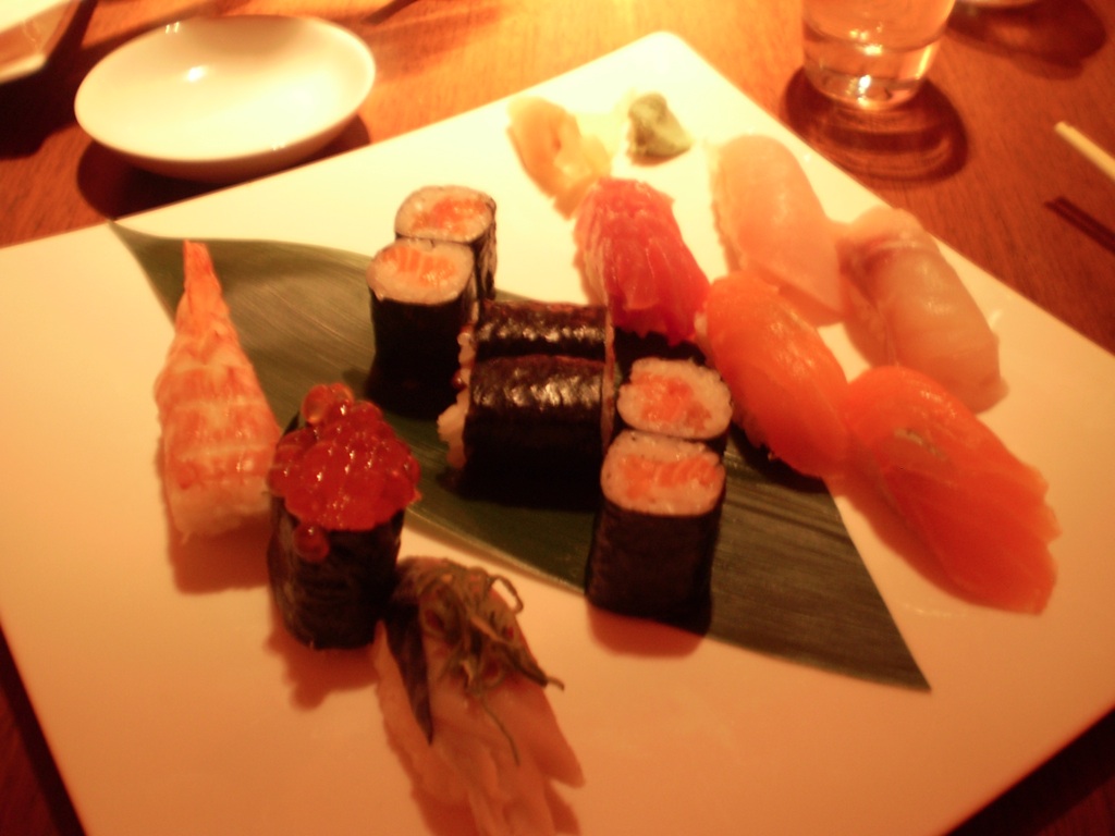 Il locale è tutt’altro che casual! Sviluppato su due piani, a quello terreno la sala per fumatori e a quello superiore quella per i non viziosi, si è accolti da un’atmosfera raffinata, il colore predominate è l’arancio, in una sfumatura lieve e ben dosata proviene da dietro le pareti. Il mobilio è minimal, la luce soffusa ma i tavoli ben illuminati: complimenti all’architetto delle luci. I cuochi ( tutti maestri sushi ) vengono informati della presenza di nuovi clienti, dall’addetto che li accompagna al tavolo e questi, in coro, salutano: singolare ma piacevole. Pesce freschissimo ( ho mangiato una delle migliori ricciole dell’ultimo anno ), fritto asciutto e croccante, dessert particolare; mi sono lasciato tentare dalla scatola bento, che poi sarebbe la scatola dove i giapponesi trasportano il cibo a lavoro, un fondente al cioccolato amaro accompagnato da gelato di the verde e frutto della passione. Il posto è particolare, il prezzo non esagerato ma comunque cospicuo. Una volta ogni tanto… Ah, non ci son foto del locale perché pare che il proprietario, un certo Armani, non voglia che si metta in rete il ” suo ” stile! Sono riuscito a rubare una foto delle toilettes, lo so non è gran che ma meglio di nulla!