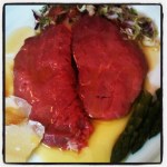 L’isola è quel luogo dove ti senti al sicuro, rilassato, il cerchio introno a te che ti fa sentire a casa. Ci sono vari tipi di isole, a ciascuno ne corrisponde un genere differente. Il genere mio è fatto di cibi e di vino. Giovanni, via Fontanariola Quincinetto, è una grande e bella isola dove trascorrere un paio d’ore immersi nelle meraviglie del porcino, della fassona piemontese, dell’antipasto che si fa re delle portate… Oggi antipasti misti ( foto n.p. causa eccessiva fame ) composti di quattro portate calde e quattro fredde inclusi: una bistecca alla milanese in carpione, ricottina di magro con pesto di verdurine sott’aceto, tartare di fassona con tartufo nero estivo… immancabile il vaso di porcini sott’olio a volontà. Piatti principali: filettino di fassona piemontese olio e limone con asparagi insalatina e scaglie di reggiano e, udite udite, cervella di fassona dorata al burro, buona quasi quanto quella che faceva la mia indimenticabile nonna. Gelatino, frutti di bosco, Barolo e allegria.