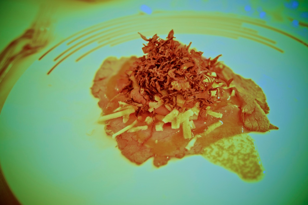 Preparazione della tradizione culinaria classica, questa ricetta è una vera goduria per il palato e per lo spirito. Ottimo fegato grasso d’anatra extra ungherese, filetto, pane casereccio, champignon e visto che siamo in stagione, carciofi croccanti per contorno. Grazie a Luca Blot per la compagnia.