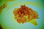 Praticamente un carpione, più leggero e delicato. Si sostituisce la tradizionale miscela di vino e aceto con succo di arance amare e limone. Friggere la rana pescatrice appena infarinata e lasciarla raffreddare su un foglio di carta assorbente ( anche se il pesce andrebbe lasciato crudo, io preferisco sempre dargli una scottata; ricordate che le marinature non sono una vera e propria cottura, non eliminano cioè i parassiti che possono annidarsi nei prodotti ittici ). Salarla e adagiarla in un recipiente con cipolla novella e peperone verde finemente tritati. Aggiungete peperoncino, cumino e coriandolo fresco tritato grossolanamente. Versare il composto di succhi di modo che questo ricopra completamente sia il pesce che le verdure e lasciare marinare per almeno quattro ore in frigo. Non servitelo troppo freddo, abbiate cura di ritirarlo dal frigo un’oretta prima di consumare il pasto. Piatto ottimo per ospiti speciali!
