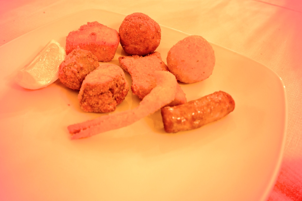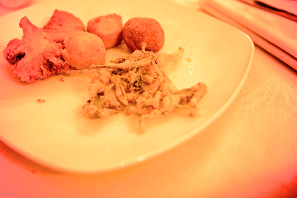 Non sono un critico culinario e nemmeno mi interessa esserlo, sono un uomo affascinato dalla buona cucina nelle più svariate forme che essa può assumere. Non mi sentirete parlare male di nessun ristorante ( dove mangio male non torno, punto e basta ) ma quando mettete le gambe sotto una bella tovaglia di stoffa e dopo tre antipasti sfiziosi vi portano una panissa che ti fa capire inequivocabilmente il detto che recita: il riso nasce dall’acqua ma muore nel vino e al seguito il famigerato, ricercatissimo e quasi mai soddisfacente fritto misto piemontese, non posso esimermi dal rendervi partecipi della mia esperienza. Una panatura dorata, croccante e sostanziosa che circonda cervella, midollo, pollo, bistecche, polpette… e poi la salsiccia e le mie dilette rane selvatiche e a seguire ancora il fritto dolce con la mela, la pera, il fico, la susina, il bacio di dama e in fine, solo alla fine, come il salmo che si chiude in gloria, il cioccolatino: esplosione croccante e liquida di bene assoluto in grado di mutare e migliorare la percezione del mondo. Bravi, chapeau!