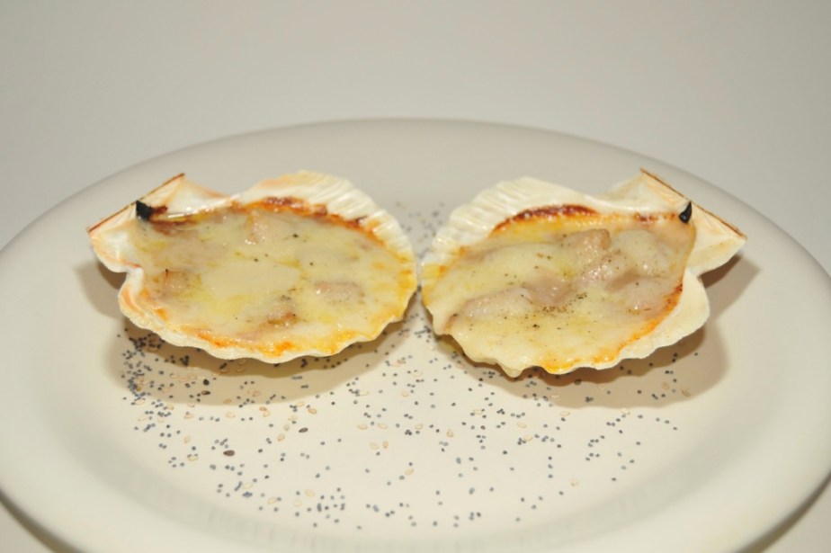 La salsa mornay, mutuata dalla cucina francese, è una besciamelle con aggiunta di rossi d’uovo, panna liquida e parmigiano reggiano. Il risultato è una crema avvolgente, dal gusto delicato e leggermente speziato, per via della noce moscata. Una salsa perfetta che non copre i sapori del mollusco anzi ne esalta la consistenza della carne così piacevolmente fibrosa da sfaldarsi al solo contatto con la lingua.