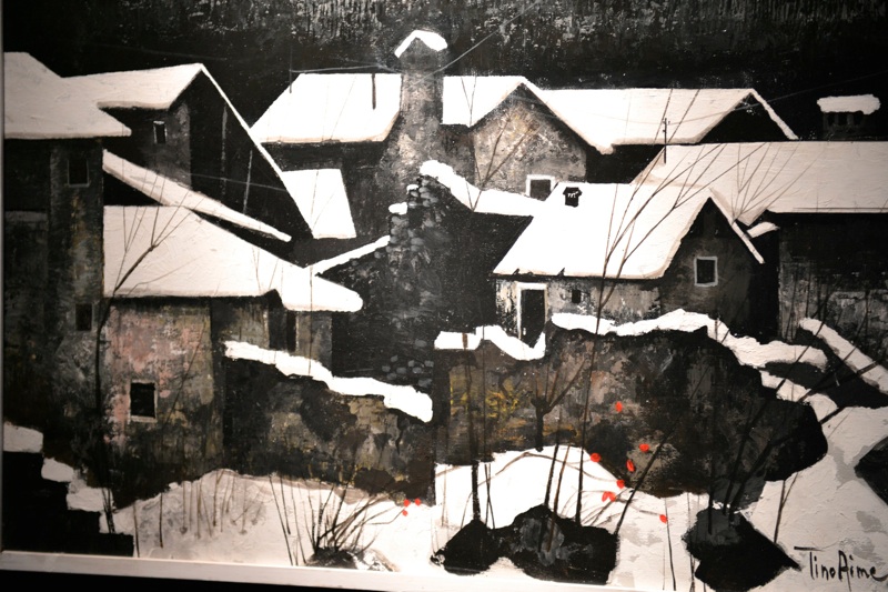 Si è inaugurata, alla presenza delle autorità regionali e di un folto pubblico, la mostra antologica dedicata al pittore, scultore, incisore, Tino Aime. L’artista, nato a Cuneo e adottato dalla Valle di Susa, è maestro sapiente dei toni dell’ocra, del bianco e del nero, chirurgo precisissimo con il bulino, probabilmente uno dei più grandi incisori figurativi viventi oggi in Italia. Bellissime le sue finestre, antiche, curate e affacciate sempre su paesi di campagna assonnati, innevati, candidamente distesi. Paesaggi spesso rotti dalla forza accecante del rosso gratacul, che nei paesaggi invernali delle mie montagne mi riporta alla mente le escursioni con mio nonno. La finestra è un’allegoria, un tema, spesso utilizzato nell’arte, mi viene in mente così di primo acchito Madame Bovary, alla quale Flaubert fa prendere le decisioni più importanti proprio alla finestra di casa. La finestra per la povera Bovary è un luogo di inquietudine, la finestra di Aime è un luogo quasi onirico. Paesaggio irraggiungibile che pure c’è e si vede.
